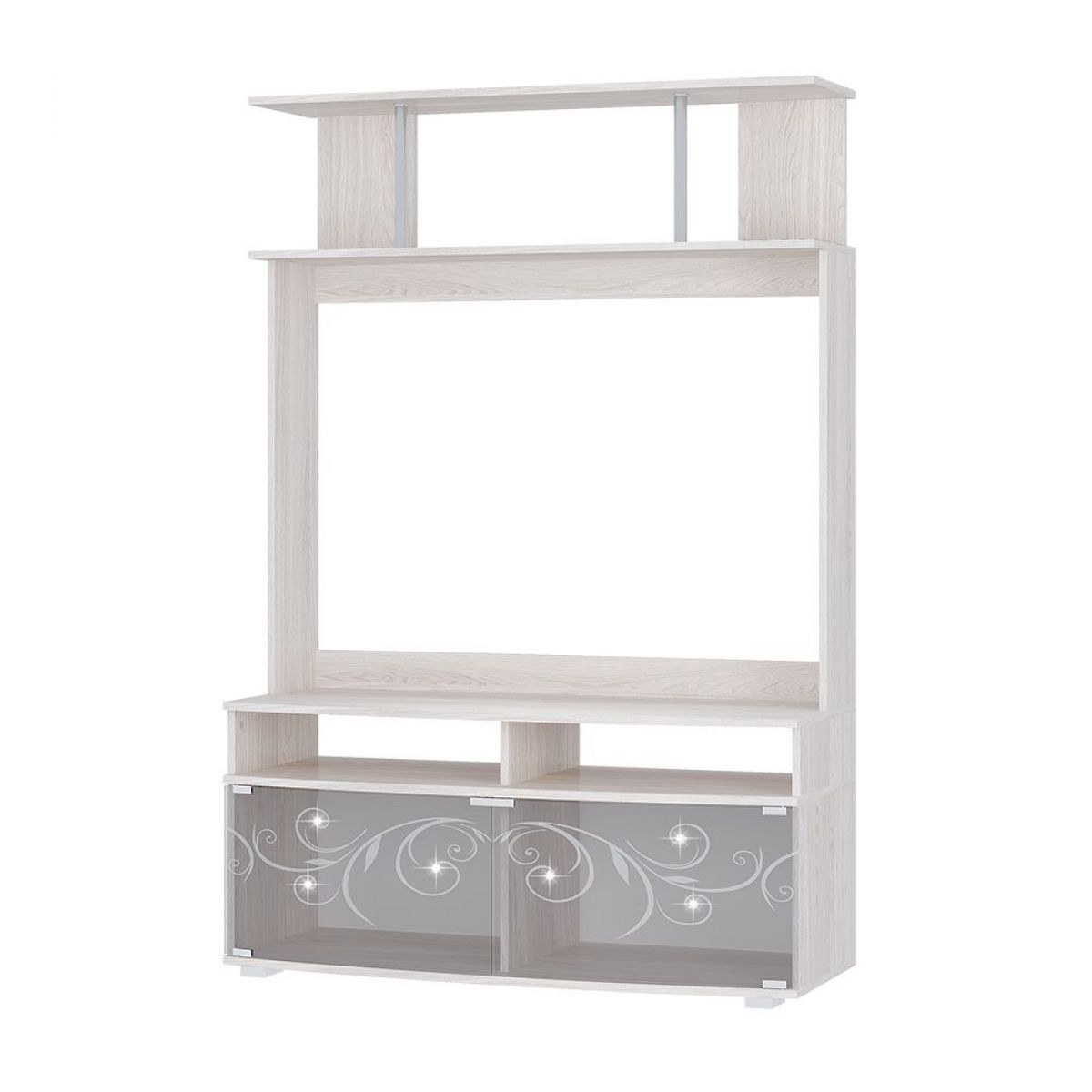 Гостиная "Флоренция" отличается утонченным дизайном и практичностью. Оттенок "белый ясень" в сочтании с растительным принтом придают помещению свежесть и легкость. Толщина кромки - 0,4 мм. Стекло 4 мм - тонированное, гнутое, пескоструйная обработка. Регулируемые пластиковые опоры высотой 20 мм. Стеклопетля с магнитом двойная флажковая. Хромированная труба d-25 мм. Максимальная нагрузка на полку - 10 кг. Стразы Svarovski.