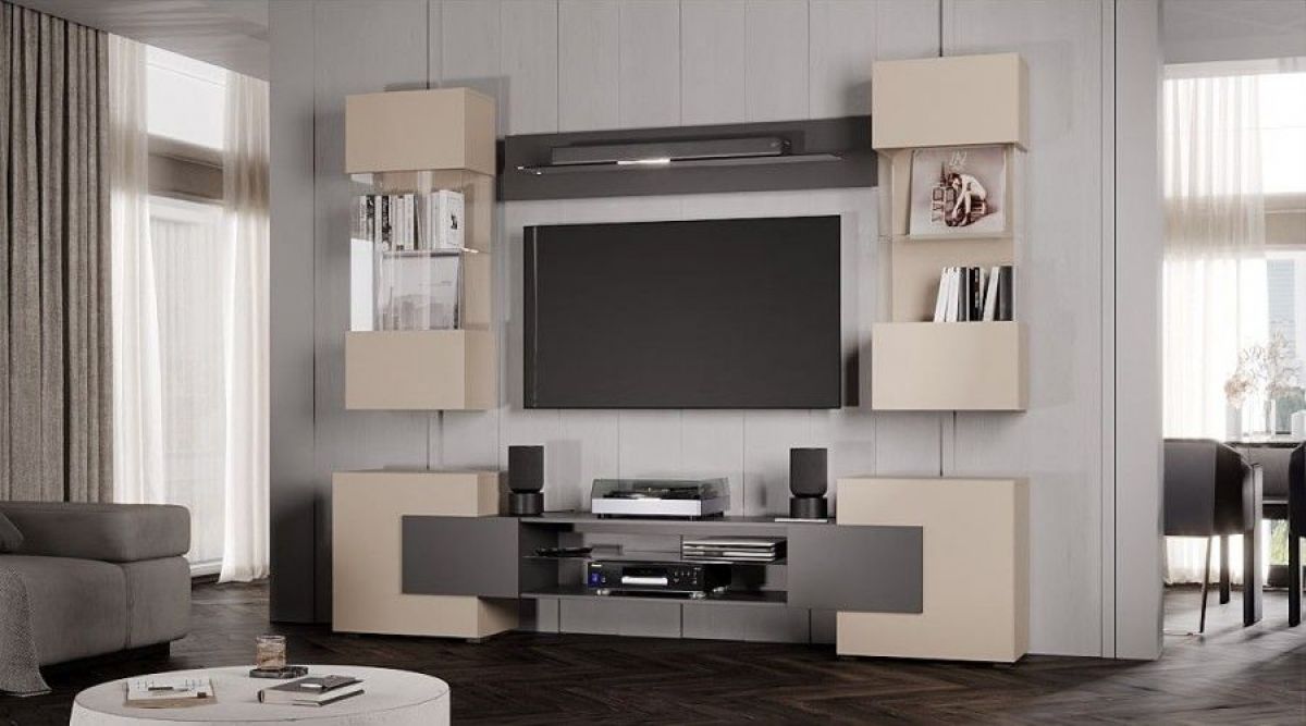 Ниша под ТВ: 1160 мм при размещении ТВ на тумбе.